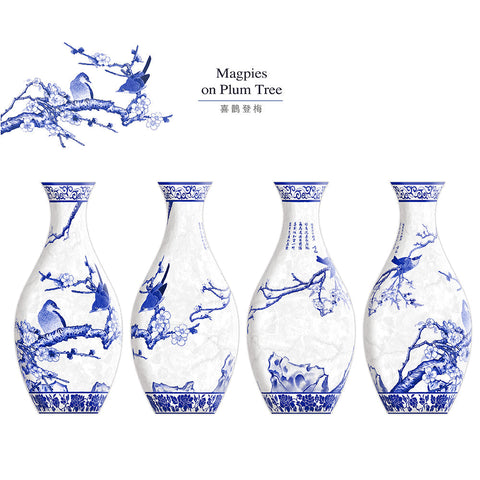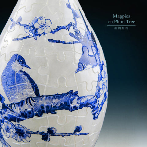 Magpies on Plum Tree - 3D Puzzle Vase Jigsaw Puzzle
